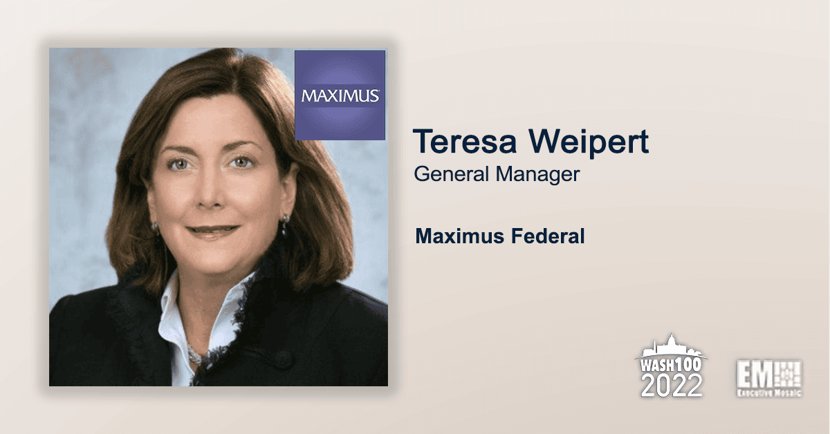 Executive Mosaic has introduced Teresa Weipert, general manager of the federal services segment at Maximus, as the newest inductee into the Wash100 in recognition of her strategy to advance citizen experience technology and service delivery for government customers.
