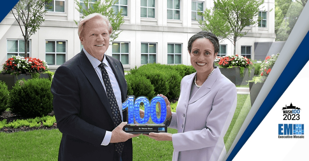 Dr. Stacey Dixon, principal deputy director of national intelligence, was presented with her fourth Wash100 Award during a meeting with Executive Mosaic CEO Jim Garrettson. She is one of the most popular inductees in the 2023 Wash100 — as proven by her status as the award's 2021 popular vote champion. Dr. Dixon attained her 2023 […]