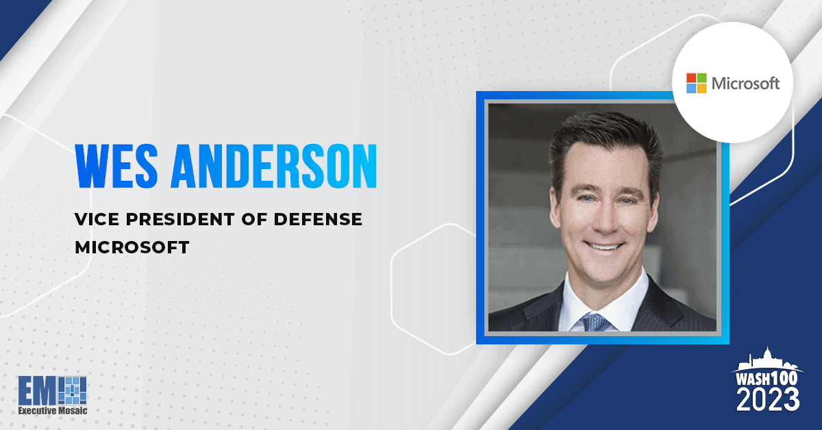 Executive Mosaic is pleased to include Wes Anderson, vice president of defense at Microsoft, in the 2023 edition of the Wash100 Award in recognition of his efforts to drive the utilization of augmented and virtual reality, cloud and artificial intelligence technologies in support of armed forces.
