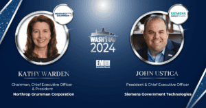 Executive Mosaic recognized Northrop Grumman Chairman, CEO and President Kathy Warden and Siemens Government Technologies President and CEO John Ustica for their 2024 Wash100 Award wins on Tuesday.