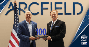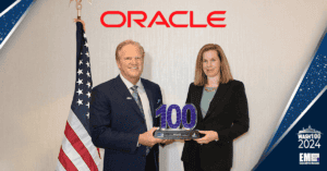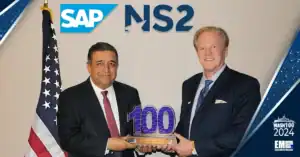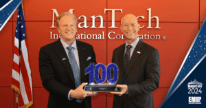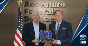 John Goodman of Accenture Federal Services Accepts 2024 Wash100 Award From Jim Garrettson of Executive Mosaic