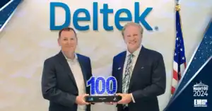 Accenture Federal Services CEO John Goodman received his 2024 Wash100 Award during a meeting with Jim Garrettson, CEO of Executive Mosaic and founder of the