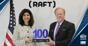 Raft CEO Shubhi Mishra was recently presented with her 2024 Wash100 Award during a meeting with Jim Garrettson, CEO of Executive Mosaic and founder of the accolade.