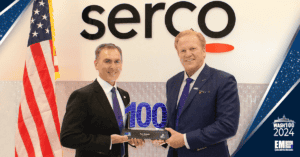 Executive Mosaic CEO Jim Garrettson presented Tom Watson, CEO of Serco Group’s North American business, with his 2024 Wash100 Award during a recent visit to Serco’s offices. Vote