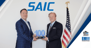 Bob Genter, president of the defense and civilian sector at Science Applications International Corp., received his first-ever Wash100 award during Executive Mosaic CEO Jim Garrettson's