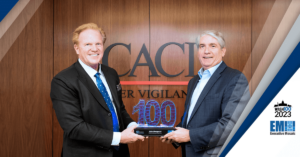 CACI CEO John Mengucci recently accepted his 2023 Wash100 Award during a meeting with Jim Garrettson, CEO of Executive Mosaic and founder of the distinguished recognition. In the