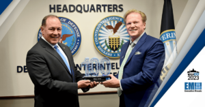 Defense Counterintelligence and Security Agency Director William Lietzau received his 2023 Wash100 Award from Executive Mosaic CEO Jim Garrettson during a recent visit to DCSA headquarters. This marks