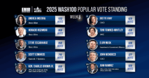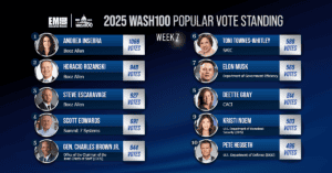 In a significant shift during Week 12 of the Wash100 Popular Vote, CACI’s DeEtte Gray has emerged as the new frontrunner, securing 1,430 votes and
