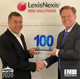 Jim Garrettson, founder and CEO of Executive Mosaic, presented Haywood Talcove, CEO of Government for LexisNexis Risk Solutions, with his first Wash100 Award on Wednesday. Executive Mosaic recognizes Talcove for his efforts to create innovative technology solutions, advance the public safety’s mission and...