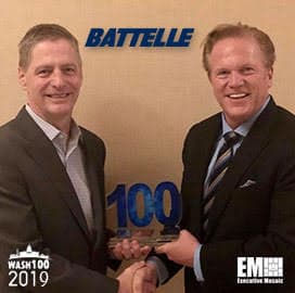 Jim Garrettson, founder and CEO of Executive Mosaic, presented Lou Von Thaer, president and chief executive officer of Battelle, with his fourth Wash100 Award on Tuesday. Executive Mosaic recognizes Von Thaer for leading efforts to advance biosecurity and other emerging...