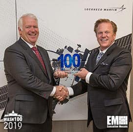 Jim Garrettson, founder and CEO of Executive Mosaic, presented Rick Ambrose, executive vice president of space systems for Lockheed Martin, with his fourth Wash100 Award on Monday. Executive Mosaic recognizes Ambrose for leading the improvement of space technologies, including use...