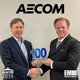 Jim Garrettson, founder and CEO of Executive Mosaic, presented John Vollmer, president of AECOM Management Services, with his fourth Wash100 Award on Monday. Executive Mosaic recognizes Vollmer for securing several large contracts in 2018 and supporting the company’s growth. We...