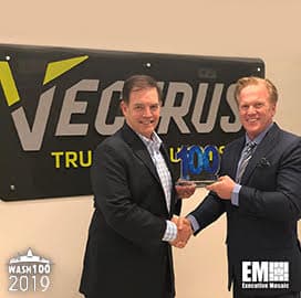 Jim Garrettson, founder and CEO of Executive Mosaic, presented Chuck Prow, president and chief executive officer of Vectrus, with his fifth Wash100 Award on Wednesday. The award comes after Vectrus was selected for the U.S. Army’s potential $82 billion LOGCAP...