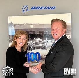Jim Garrettson, founder and CEO of Executive Mosaic, presented Leanne Caret, president and CEO of Boeing Defense, Space and Security, with her third consecutive Wash100 Award on Monday. Executive Mosaic recognizes Caret for leading and expanding Boeing’s portfolio of defense...