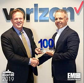 Jim Garrettson, founder and CEO of Executive Mosaic, presented Michael Maiorana, senior vice president of Verizon’s public sector, with his first Wash100 Award on Tuesday. Executive Mosaic recognizes Maiorana for his leadership and sales expertise that led to several major achievements and contracts...