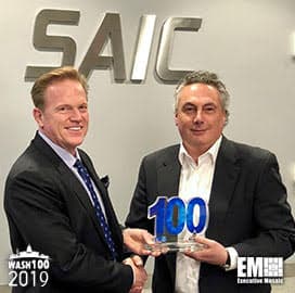 Jim Garrettson, founder and CEO of Executive Mosaic, presented Tony Moraco, CEO of Science Applications International Corporation, with his sixth consecutive Wash100 Award on Monday. Executive Mosaic recognizes Moraco for his leadership, notably during the company's ongoing $2.5B acquisition of...