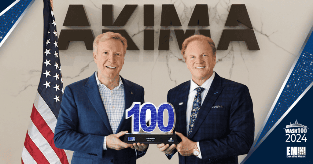 Akima President and CEO Bill Monet accepted his 2024 Wash100 Award from Executive Mosaic CEO Jim Garrettson at Akima’s offices in Herndon, Virginia last week. The Wash100 Award annually recognizes the top 100 most influential and impactful executives working in the federal government and the government contracting industry. These executives of consequence are awarded based on their leadership, […]