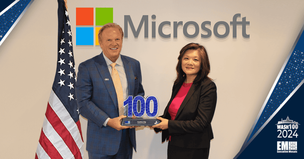 Candice Ling, federal sector leader at Microsoft, received her 2024 Wash100 Award during a recent meeting with Jim Garrettson, CEO of Executive Mosaic and founder of the recognition. Each year, Wash100 celebrates the triumphs of the most distinguished executives in the government contracting industry. Winners of a Wash100 Award are those who have demonstrated unparalleled leadership prowess and […]