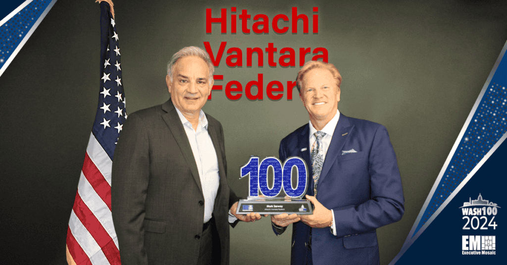 Hitachi Vantara Federal President and CEO Mark Serway accepted his 2024 Wash100 Award from Executive Mosaic CEO Jim Garrettson during a recent visit to Hitachi Vantara Federal’s Reston office. Each year, Executive Mosaic’s Wash100 Award recognizes the most influential executives in the government and government contracting industry. These 100 executives of consequence are selected to the prestigious Wash100 […]