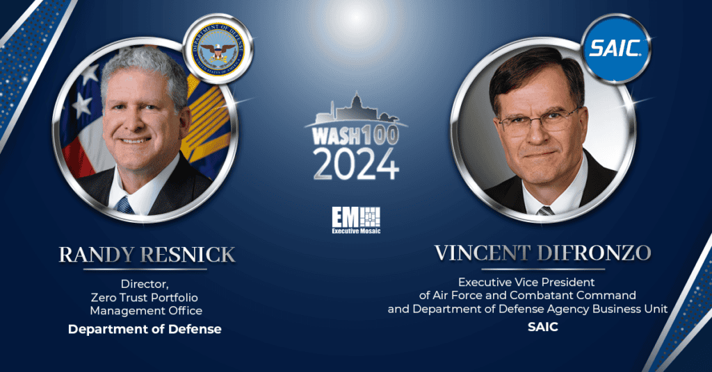 Executive Mosaic publications today singled out the achievements of the Department of Defense’s Randy Resnick and SAIC’s Vincent DiFronzo in light of their 2024 Wash100 Award wins. Wash100 Award winners are the MVPs of government contracting — these accomplished executives hail from both industry and government but can always be found helping to steer the massive ship that […]