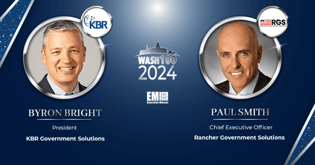 Executive Mosaic is pleased to recognize Byron Bright, president of KBR Government Solutions, and Paul Smith, CEO of Rancher Government Solutions, as winners of the prestigious 2024 Wash100 Award. Byron Bright and Paul Smith are contestants in the annual Wash100 popular vote competition! Visit Wash100.com to cast your ten votes for these and other candidates. Voting closes April 30. […]