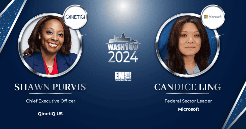 QinetiQ US CEO Shawn Purvis and Microsoft Federal Sector Leader Candice Ling were recognized by Executive Mosaic on Wednesday in honor of their 2024 Wash100 Award wins. Wash100 annually celebrates the government contracting industry’s most triumphant executives. Individuals who receive a Wash100 Award represent the spirit of skilled leadership and career success. Winners are also selected for their […]
