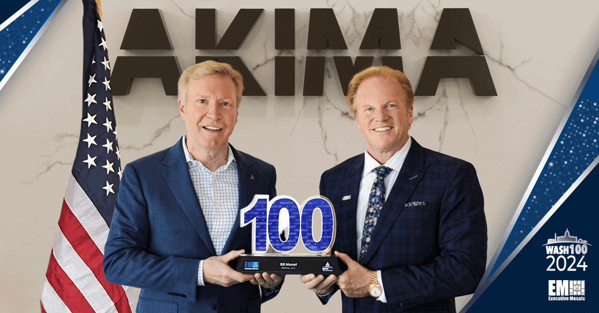 "Bill is a fixture in the GovCon ecosystem. His 30 years of experience in diverse sectors fuel Akima's consistent and significant growth in areas like IT, systems engineering, facilities and ground logistics, aerospace solutions and more. Bill has built predictability into his operation and supports the five year stretch of not only steadily improving results but deserving recognition by the Wash100 committee," Garrettson added.