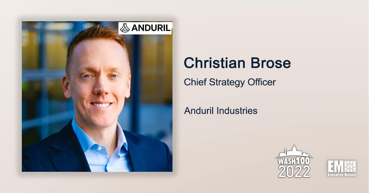 Executive Mosaic has introduced Christian Brose, chief strategy officer of Anduril Industries, as the latest inductee into the 2022 Wash100 for his thought leadership in autonomous and artificial intelligence-based defense systems.