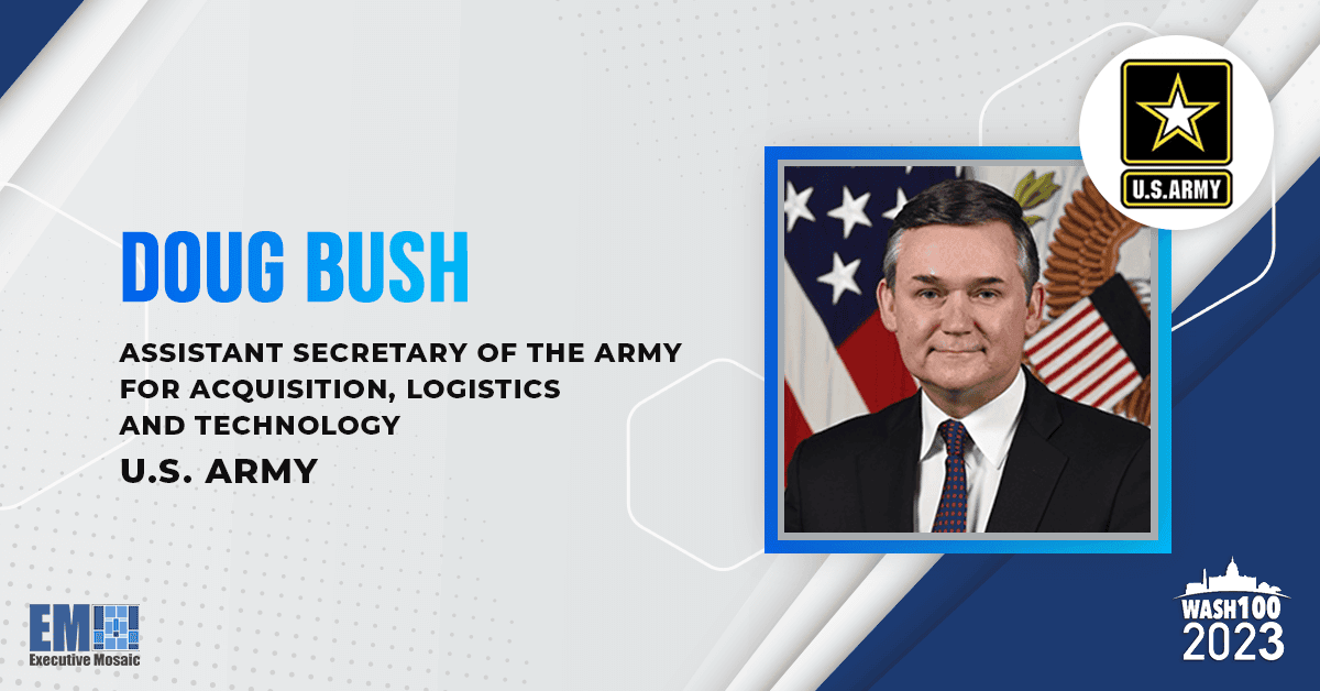 Executive Mosaic is excited to recognize Douglas Bush, assistant secretary of the U.S. Army for acquisition, logistics and technology, with his first-ever Wash100 Award in honor of his dedication to delivering critical capabilities to the service branch and U.S. allies.