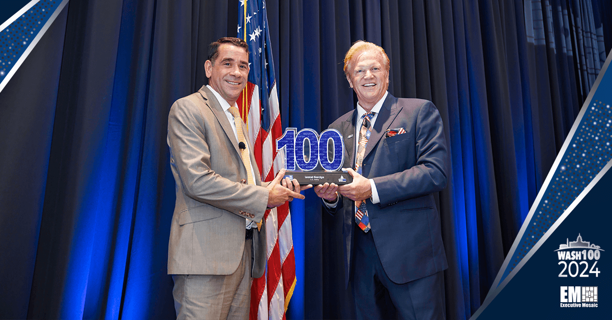 During the Potomac Officers Club’s Army Summit in mid-June, the service’s Chief Information Officer Leonel Garciga collected his 2024 Wash100 Award from Executive Mosaic CEO Jim Garrettson.