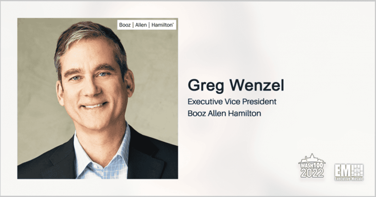 Executive Mosaic has included Greg Wenzel, an executive vice president at Booz Allen Hamilton, in the 2022 class of Wash100 Award recipients for his continued efforts to drive growth for the defense practice of the McLean, Virginia-based management and information technology consulting firm. His fourth consecutive Wash100 recognition builds on his 2021 win that, according to Executive Mosaic CEO Jim Garrettson, underscored his drive and expertise in the development of Department of Defense capabilities.