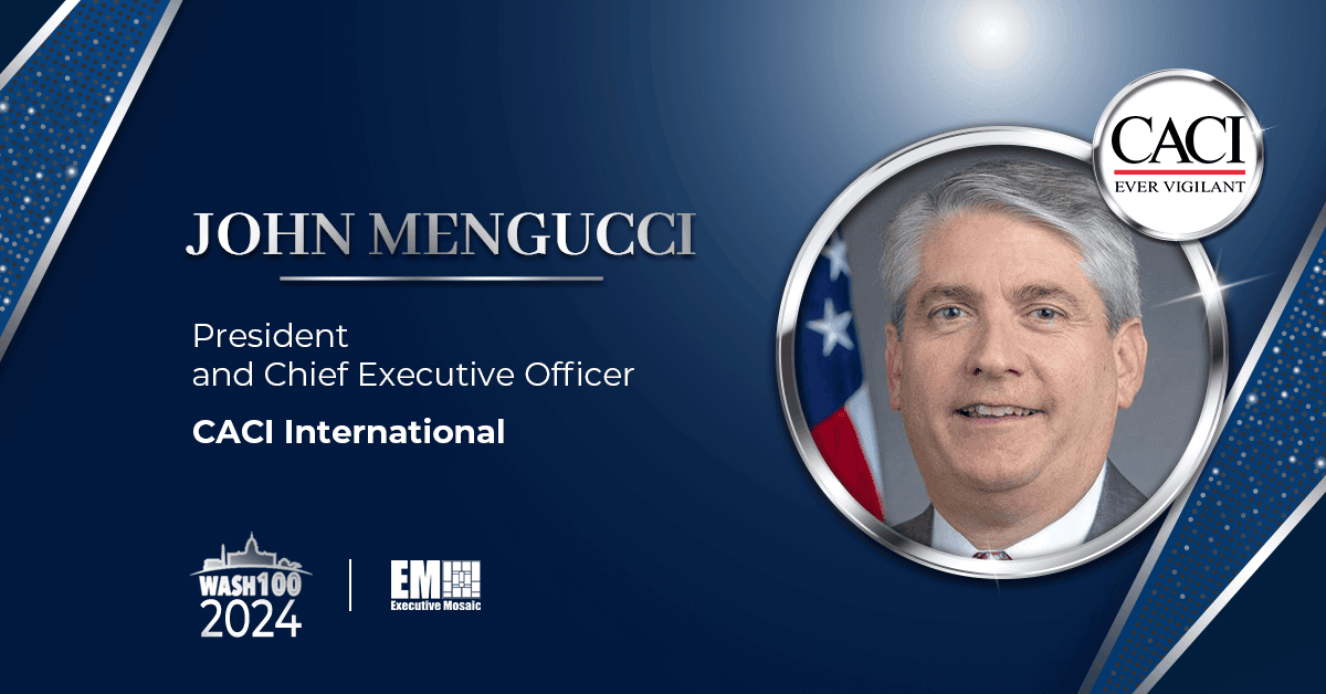 Executive Mosaic is pleased to introduce John Mengucci, president and CEO of CACI International, as a 2024 Wash100 Award recipient for his leadership in advancing strategic growth through major contract wins and pushing innovation in support of warfighters.