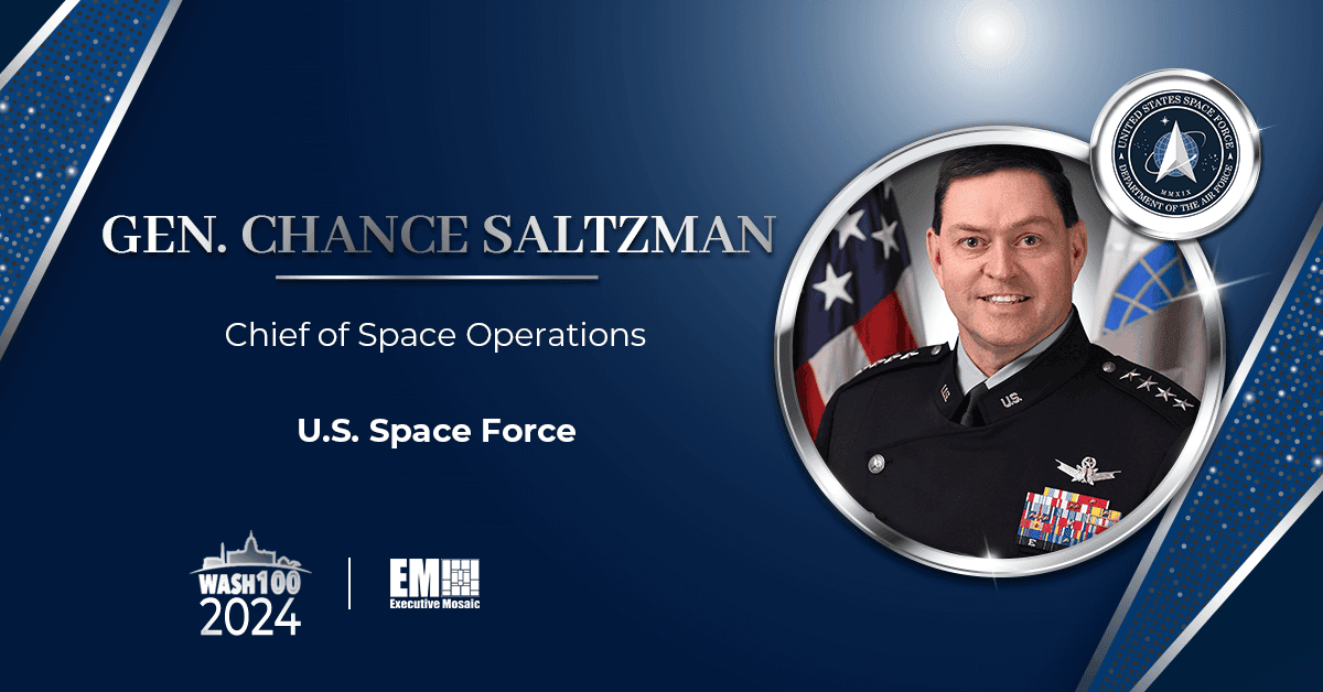 “The U.S. Space Force was established to answer our nation's call for superiority in the increasingly contested and congested space domain, and Gen. Saltzman — with his purposeful vision and an unwavering dedication to securing our nation's interests in, from and to space — is an exceptionally fit leader for the force and for our 2024 Wash100 list. We thank Gen. Saltzman for his resolute leadership in service of our country during this critical era in space,” said Jim Garrettson, CEO of Executive Mosaic and founder of the Wash100 Award.