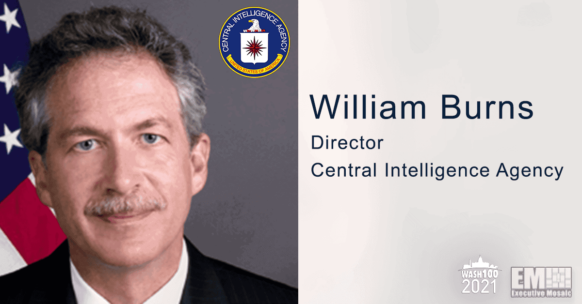 Executive Mosaic is pleased to announce that William Burns, director of the Central Intelligence Agency (CIA), has received a 2021 Wash100 Award for driving national security strategies and defense, developing technology solutions and promoting workforce initiatives.