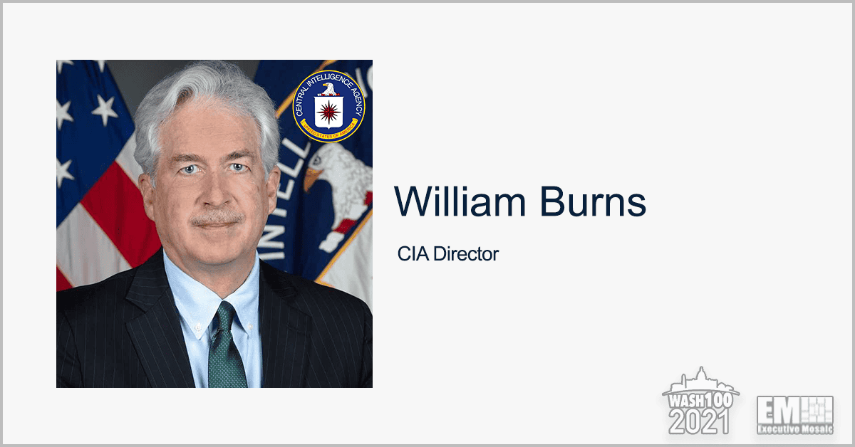 Executive Mosaic has announced that William Burns, director of the Central Intelligence Agency (CIA), has received a 2021 Wash100 Award for driving national security strategies and defense, developing technology solutions and promoting workforce initiatives.