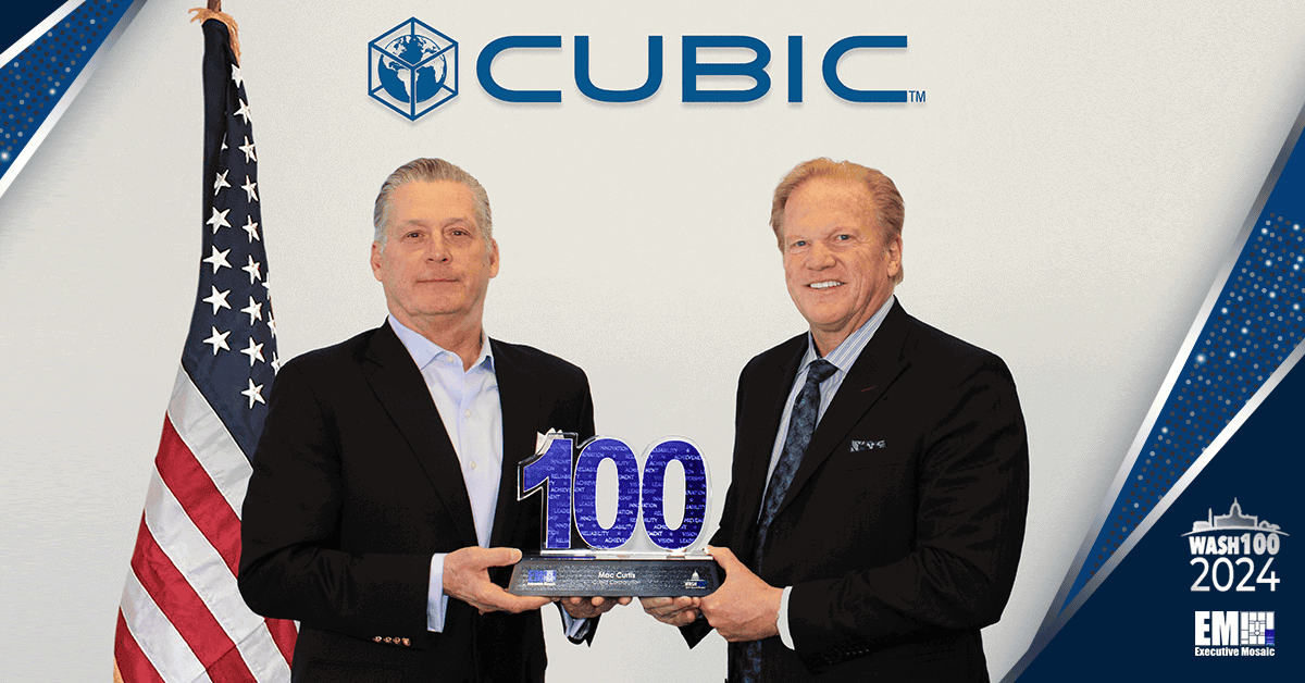 Cubic Chairman Mac Curtis recently accepted his 2024 Wash100 Award during a meeting with Jim Garrettson, CEO of Executive Mosaic and founder of the coveted award.