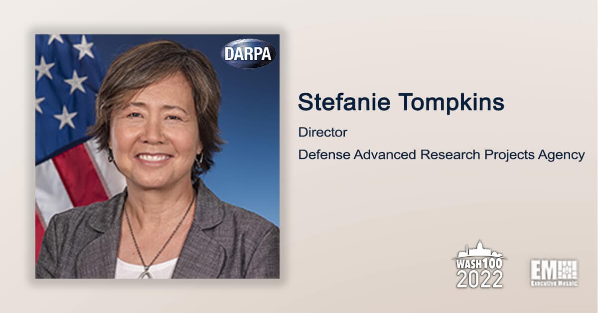 Executive Mosaic has inducted Stefanie Tompkins, director of the Defense Advanced Research Projects Agency, into the 2022 edition of the Wash100 Award in recognition of her efforts to advance national defense capabilities and drive agency culture. This marks the first time that Tompkins has been named among Executive Mosaic's top officials and executives in the government contracting arena. Visit ExecutiveBiz to read her full feature.
