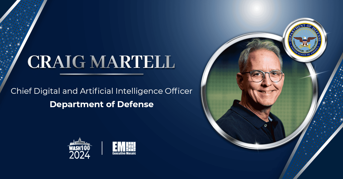 Craig Martell, chief digital and artificial intelligence officer of the Department of Defense, has been selected by Executive Mosaic for the 2024 Wash100 roster of exceptional leaders in the government contracting sector. This year, Martell is credited for his stance and efforts to ensure that artificial intelligence is used responsibly and within the ethical bounds of U.S. law.