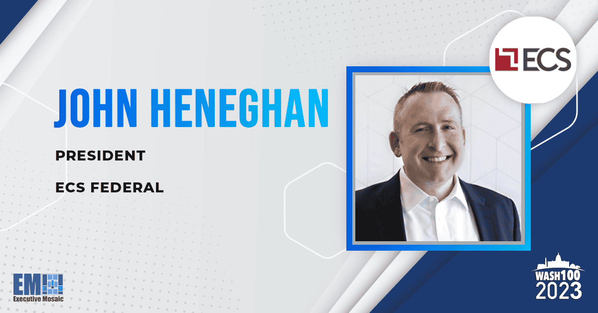 As ECS continues to expand its offerings and its footprint in the GovCon market, John Heneghan will be a key figure to watch in 2023. Executive Mosaic congratulates John Heneghan and ECS Federal on their 2023 Wash100 Award.