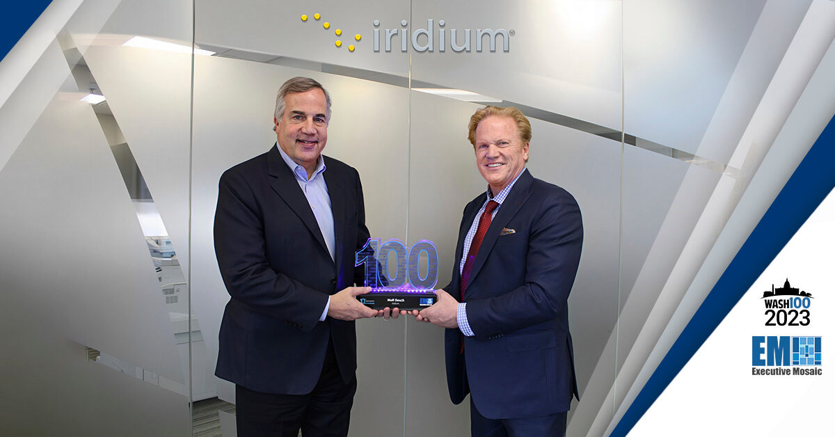 Matt Desch, CEO of Iridium, recently met with Executive Mosaic CEO Jim Garrettson to receive his 2023 Wash100 Award.