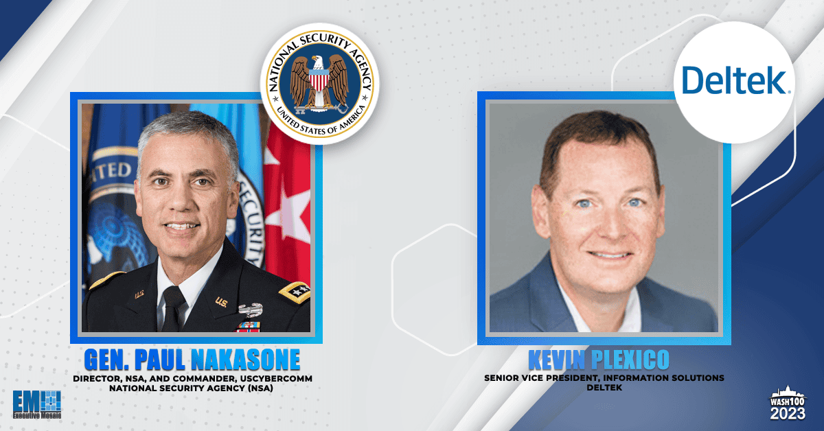 General Paul Nakasone and Kevin Plexico were celebrated as winners of Executive Mosaic’s 2023 Wash100 Award, an annual list of the most distinguished and influential executives working in the government contracting sector.