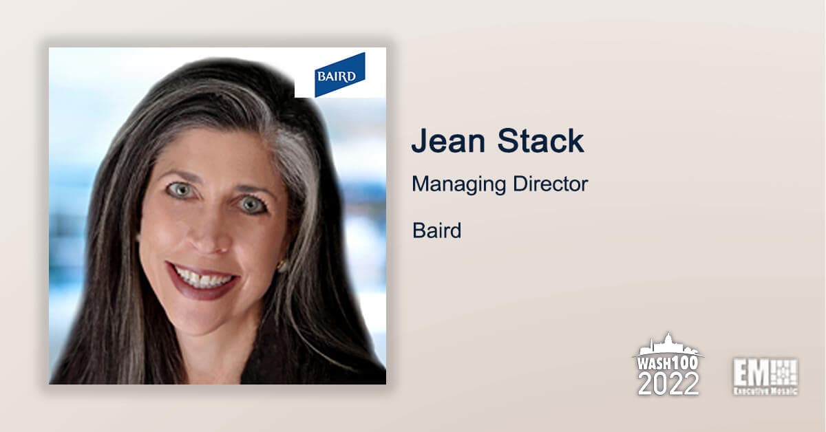 Executive Mosaic has inducted Jean Stack, managing director at Baird, into the 2022 edition of the Wash100 Award in recognition of her efforts to drive company growth and oversee more than $7 billion in merger and acquisition deals in the government contracting sector. This marks the second time Stack has won the Wash100 Award. Visit GovCon Wire to read her full profile.