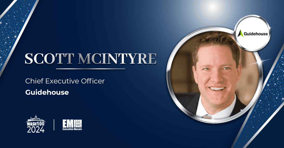 Executive Mosaic is pleased to introduce Scott McIntyre, CEO of Guidehouse, as an inductee into the 2024 edition of the Wash100 Award in recognition of his continued leadership and commitment to pursuing business excellence in the government contracting industry.