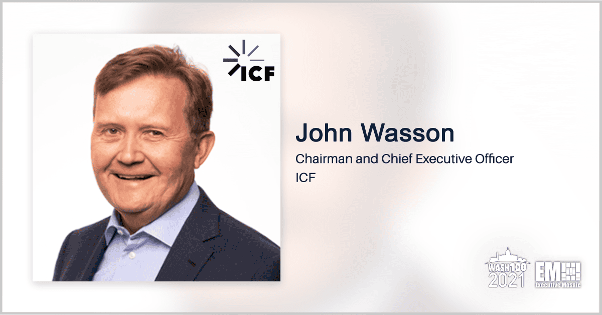 "Our commitment to climate change is not just about our corporate sustainability, it is part of who we are and what we do. We are proud to be recognized for our ongoing climate actions, ambitions and transparency,” said John Wasson, ICF chairman and CEO as well as a two-time Wash100 Award recipient.