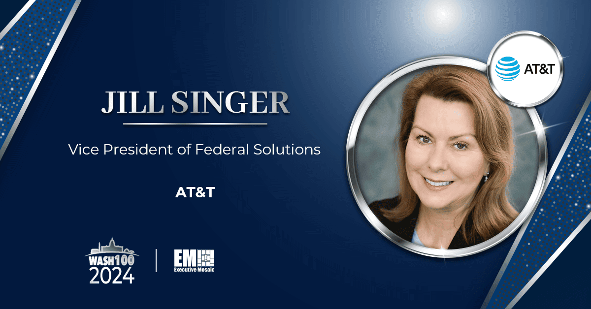Commenting on Singer, Jim Garrettson, CEO of Executive Mosaic and founder of the Wash100 Award, said, “Formerly CIO at NRO and a previously a six-time Wash100 winner, Jill is at the operational forefront of 5G, edge and network advancements, but she also possesses a deep knowledge of intelligence, defense and national security missions that well positions her to understand the needs of AT&T's customers and deliver next-generation network capabilities to them.”