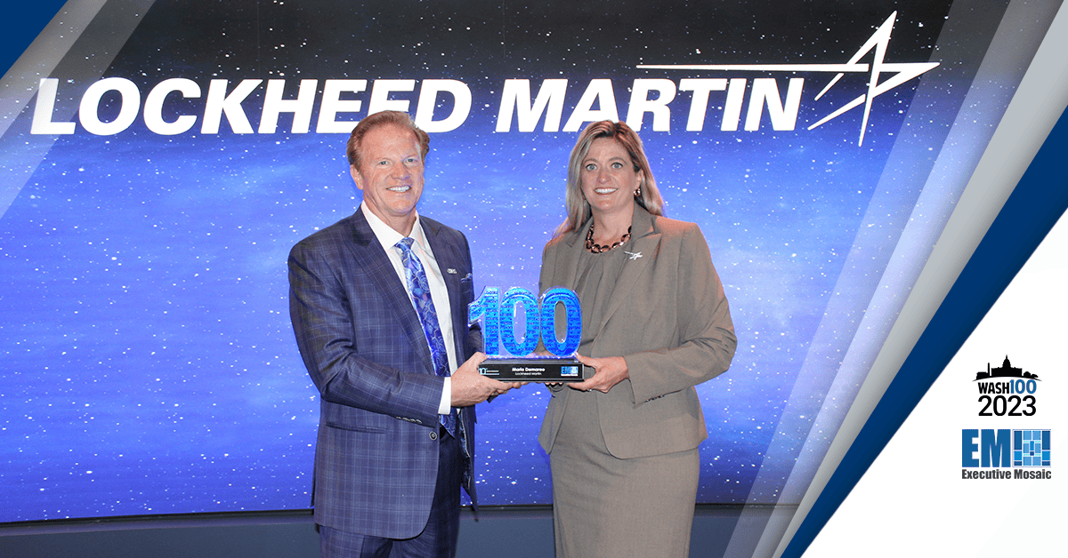 Maria Demaree, a vice president and general manager of Lockheed Martin’s space business, received her 2023 Wash100 Award from Executive Mosaic CEO Jim Garrettson during a recent presentation ceremony.