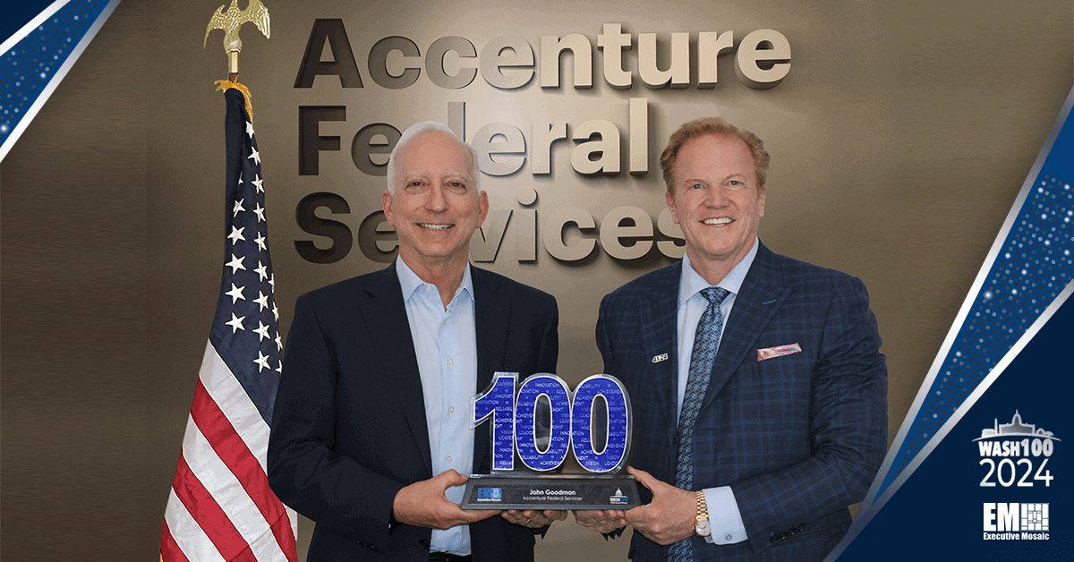Executive Mosaic congratulates John Goodman and the entire Accenture Federal Services team for their selection to the 2024 edition of the Wash100 Award.