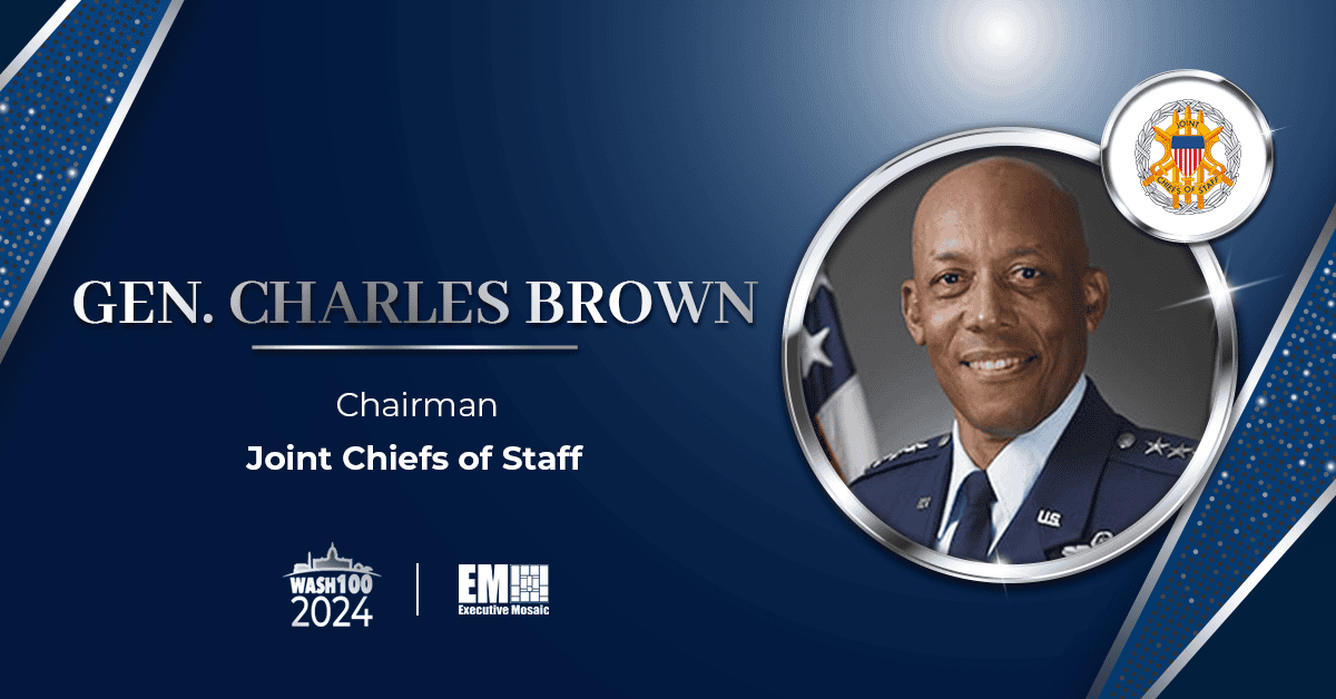 Executive Mosaic is honored to introduce Gen. Charles “CQ” Brown, chairman of the Joint Chiefs of Staff, as an inductee into the 2024 Wash100 — an annual list of public and private sector leaders who are at the forefront of trends and events shaping the government contracting activity.