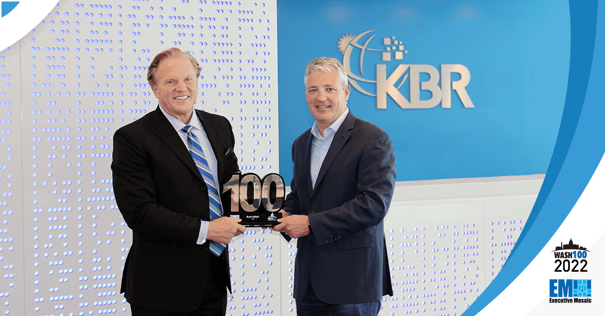 Byron Bright, president of the government solutions business at KBR, recently received his 2022 Wash100 Award, the highest honor in all of government contracting (GovCon), for his leadership in driving KBR’s military technology engineering, development, support and sustainment efforts in areas such as space, cyber and data analytics.