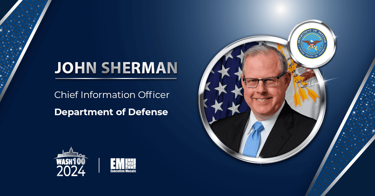 Executive Mosaic is pleased to announce that Department of Defense Chief Information Officer John Sherman has been inducted into the 2024 class of the Wash100 Award, an annual recognition of the 100 most influential and impactful leaders within the government contracting space.